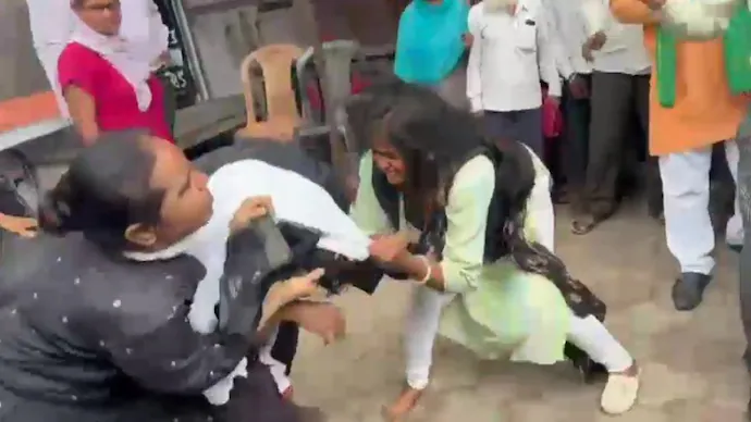 A fierce altercation occurred between two female lawyers on the Mathura court grounds on Friday. Footage of the incident has been circulating widely on social media, captured by bystanders using their phones.