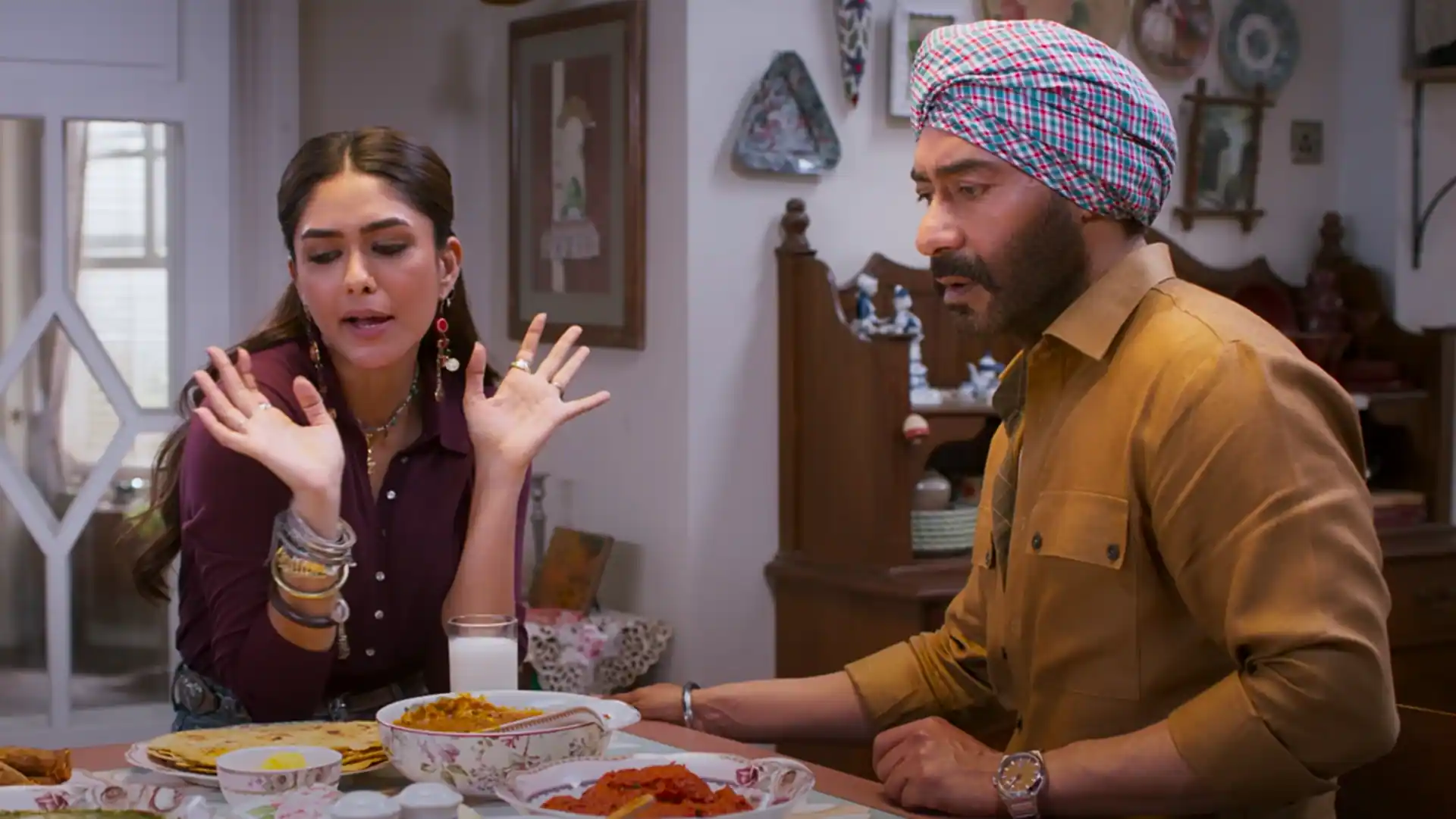 The trailer for Son of Sardaar 2 was unveiled on July 14. It opens with a nod to its predecessor, Son Of Sardaar, which came out in 2012. Early in the trailer, Ajay makes a jab at Pakistan, criticizing them for their bombings in our nation. There is also a notable reference to Sunny Deol from Border 2. Alongside Mrunal, viewers can catch a glimpse of their chemistry following the viral hook step from Pehla Tu Duja Tu. Mukul Dev also makes his final appearance on screen, joined by Vindu Dara Singh, Ravi Kishan, and Kubbra Sait.