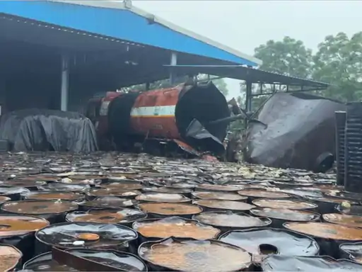 According to officials from the Bhadarwa police station, the incident occurred while the tanker was being heated to remove stuck asphalt. During the process, gas pressure inside the tanker increased, resulting in a massive explosion.
