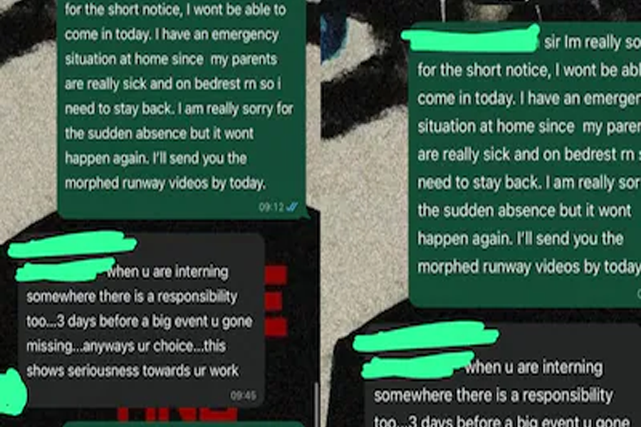 The post, titled “Boss won’t allow my friend to take emergency leaves as an unpaid intern”, included a screenshot of the conversation between the intern and their boss. In the chat, the intern politely explained the emergency situation, stating, “Sir, I’m really sorry for the short notice. I won’t be able to come in today as my parents are really sick and on bedrest. I need to stay back. I’ll send you the morphed runway videos by today.”