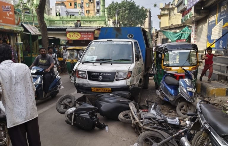 According to police and eyewitness reports, the accident happened near the Pagthia area of Jamalpur around 6 am, when the van veered off course and struck two two-wheelers. The collision caused one of the riders, identified as Mohammadbhai (50), to fall and sustain severe head injuries, resulting in his death at the scene.