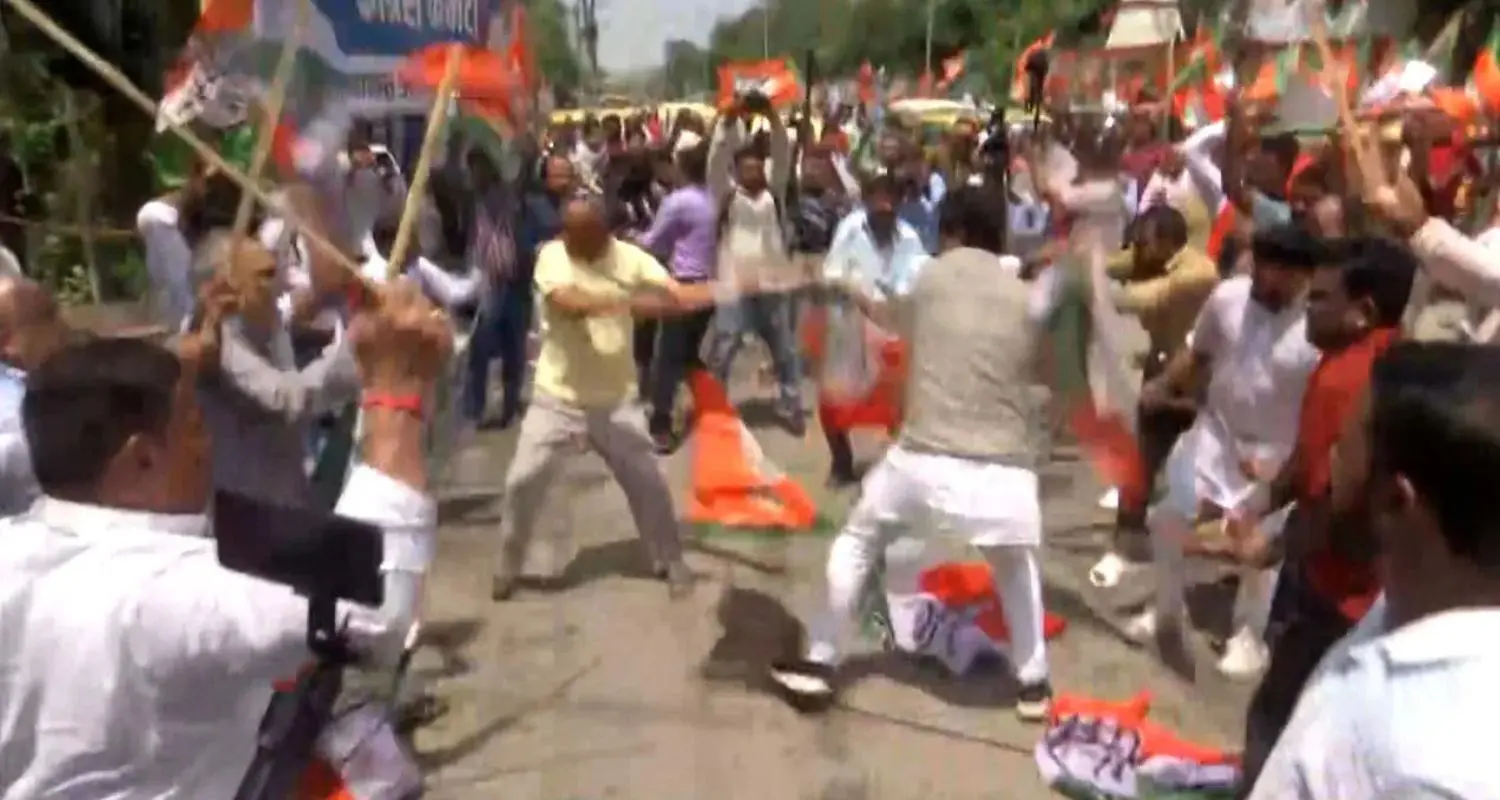 Videos of the clash quickly went viral on social media, showing party workers tearing each other’s flags amid heated confrontations. Speaking to news agencies, BJP leader Nitin Nabin said the party would give a “befitting reply” to Congress for insulting PM Modi’s mother, adding, “We will take revenge for this.”