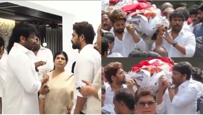 Heartbreaking videos from the funeral have surfaced on social media, showing Allu Arjun alongside his uncle, megastar Chiranjeevi, carrying the bier during the procession.