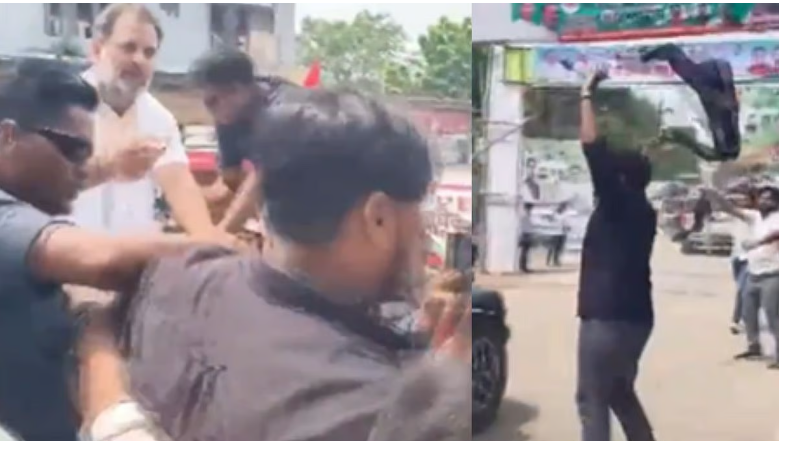 A video from the incident shows BJP workers waving black flags as Gandhi’s vehicle passed through the area. In an unexpected move, Rahul Gandhi stopped his jeep, called one of the protestors closer, and instructed his security to allow him through. After a brief conversation, Gandhi handed the young man a few candies before leaving.
