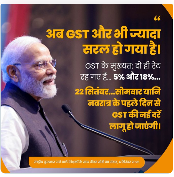 New Delhi: Prime Minister Narendra Modi on Monday lauded the recent GST reforms announced by Union Finance Minister Nirmala Sitharaman. Speaking to National Awardee teachers at his official residence on 7, Lok Kalyan Marg, PM Modi highlighted that the Goods and Services Tax (GST) has been made simpler, with tax slabs reduced to just 5% and 18%.