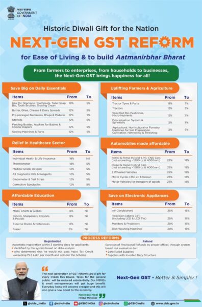 Under GST 2.0, the system has been simplified to two slabs of 5% and 18%, replacing the earlier 12% and 28% brackets. Luxury and sin goods, such as pan masala, tobacco, aerated drinks, high-end cars, yachts, and private aircraft, will continue to attract a 40% tax. The revamp also brings simplified registration, faster refunds, reduced compliance costs, and better clarity for businesses and states.