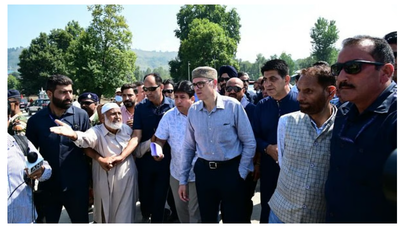 Omar Abdullah Assures Relief During Visit to Anantnag Flood-Hit Areas in J&K