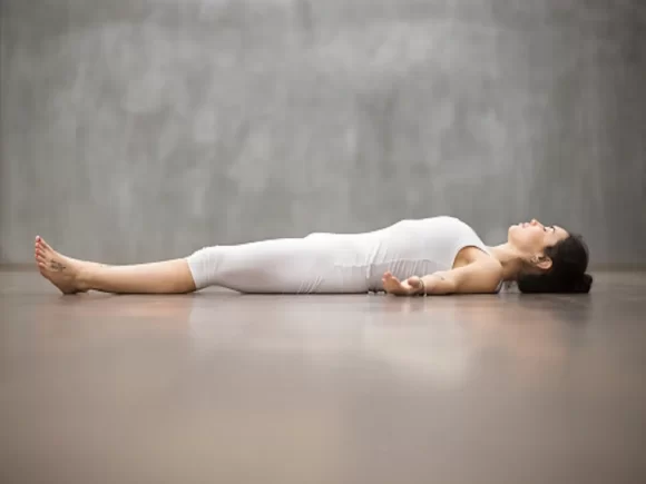 Lie flat on the mat, arms relaxed, eyes closed. Stay still for a minute or two, allowing the body to absorb the benefits of the practice.