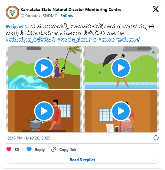 The Karnataka State Natural Disaster Monitoring Centre (KSNDMC) issued a weather report on X (formerly Twitter), forecasting “scattered to widespread moderate rain with heavy showers at isolated places along with thundershowers and strong winds” in the north interior districts until September 14. Very heavy rain has been predicted at isolated locations on September 13.