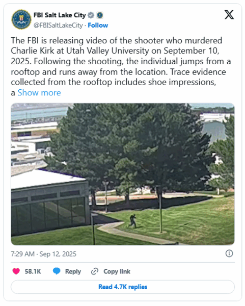 The FBI had previously released images of a person of interest linked to the assassination, seeking public assistance in identifying the suspect, who was described as wearing a cap, black sunglasses, a long-sleeved black T-shirt, and jeans.