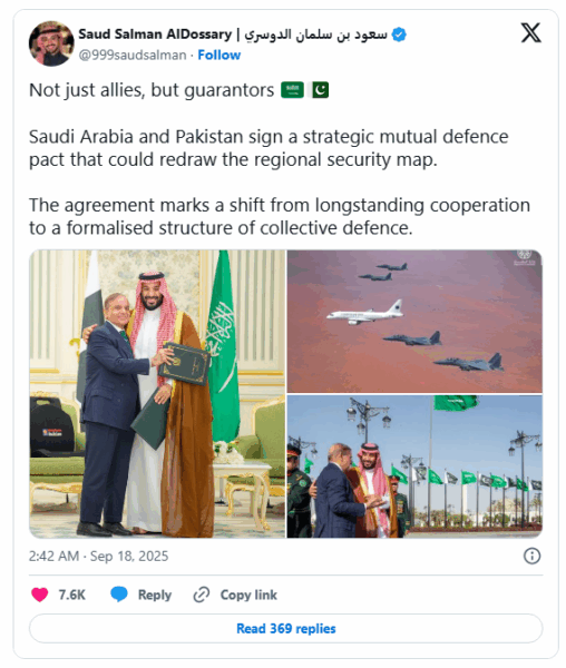 Analysts say this may complicate India’s regional security calculations, especially if Pakistan seeks to invoke the pact during future conflicts.