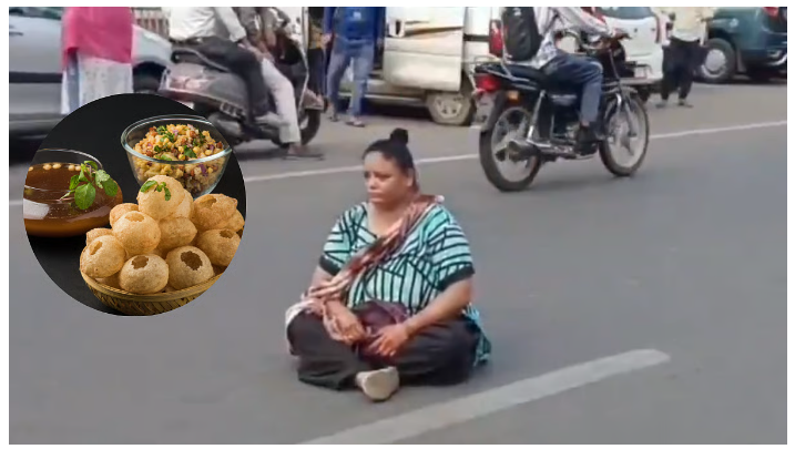 Vadodara, Gujarat: A bizarre incident in Vadodara has gone viral on social media after a woman staged an unusual protest in the middle of a busy road over being served fewer Pani Puris than expected.