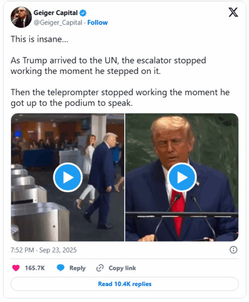 UN Spokesperson Stephane Dujarric responded by clarifying that a built-in safety mechanism had triggered the escalator’s shutdown, likely due to a videographer from Trump’s delegation accidentally activating it. Dujarric said the escalator was reset shortly after and that there was no foul play.